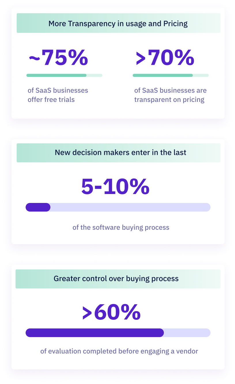 Changing macro-conditions, highly competitive markets, and democratic access to information are shifting the scales in the SaaS buying process, placing more power in the hands of the customers. It also directly influences the accountability of pricing models to move from the cost of capability ownership to the cost of tangible outcomes.