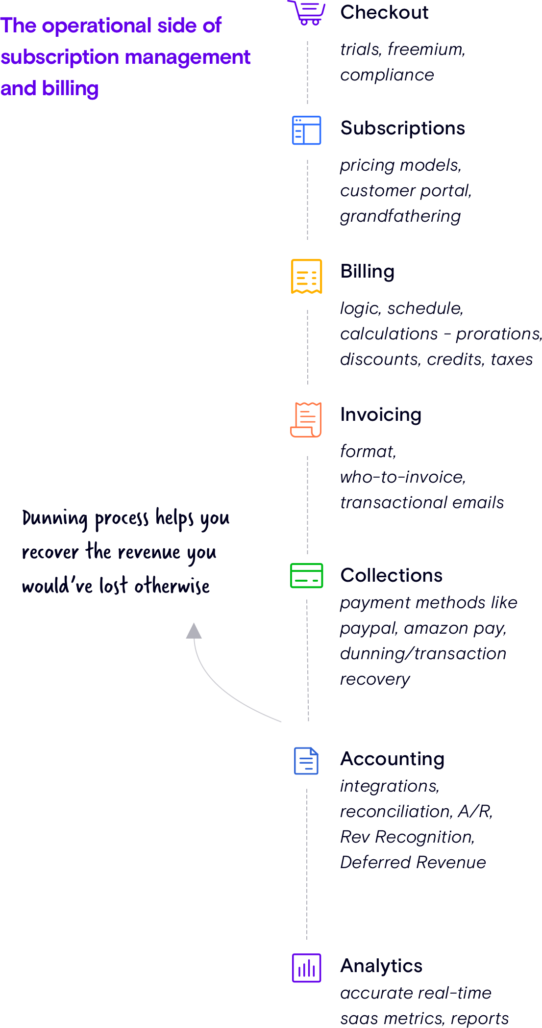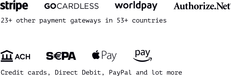 Collections (payment methods like PayPal, Amazon Pay, dunning/transaction recovery)